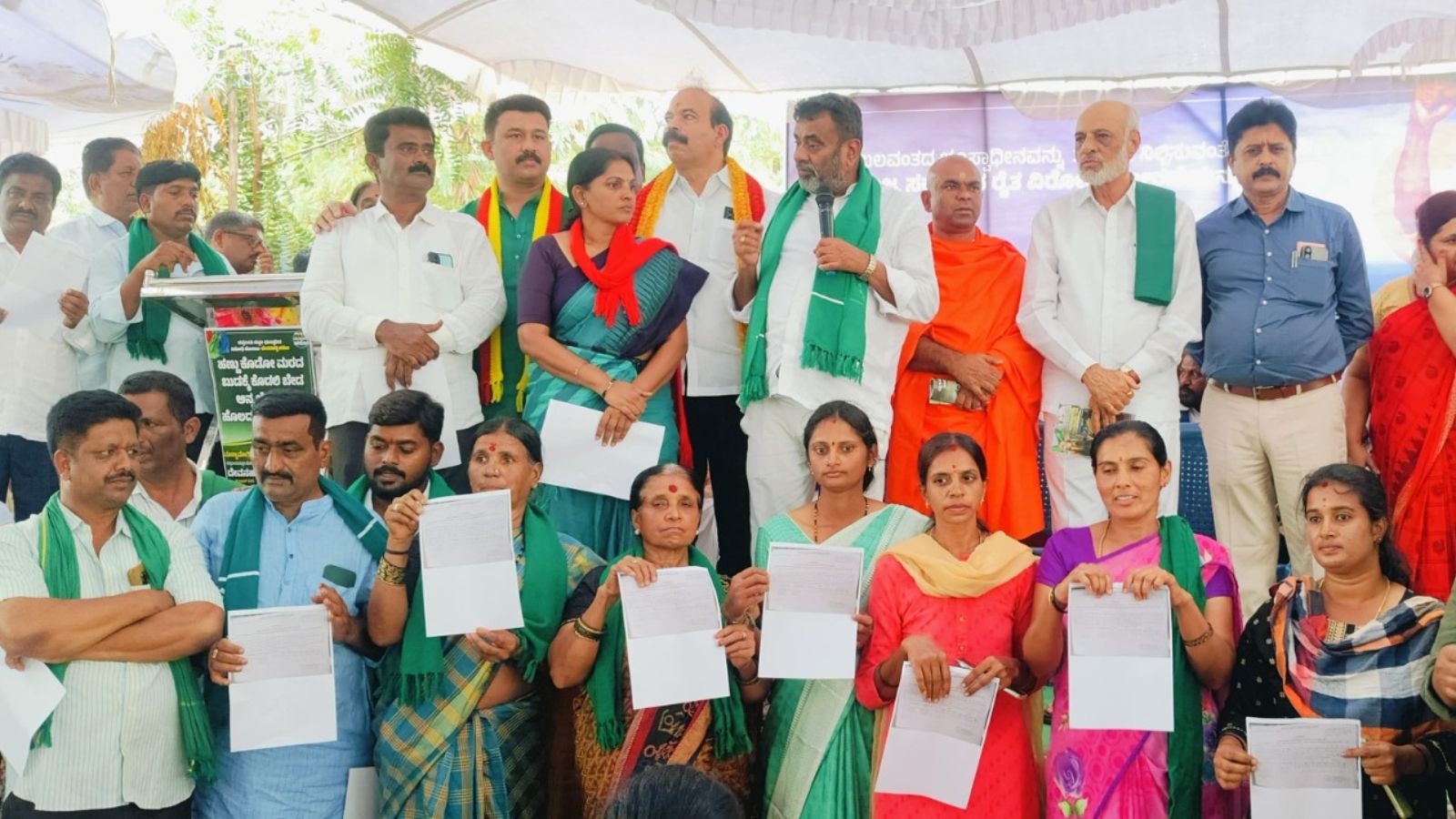 Farmers from BENGALURU VILLAGE in Devanahalli Taluk are staging a sit-in protest to protect their farmland from being seized unlawfully under the guise of various projects. Supporting their cause is former Member of Parliament and actress Ramya, who has highlighted the importance of land conservation and farmers’ rights.