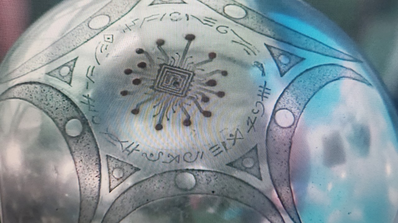 Named the Booga Sphere, this ancient-looking metal ball was taken to a laboratory for detailed study. Its outer surface featured an intricate pattern resembling a rangoli (traditional Indian art), and embedded in its center was a chip-like component. Around this chip, symbols in an unknown ancient script were etched. Although they resembled a written language, experts have so far been unable to decipher them.