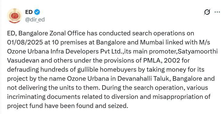 ಹಣಕಾಸಿನ ಅಕ್ರಮಗಳ ಪ್ರಕರಣಗಳಲ್ಲಿ ಶೋಧ, ವಶಪಡಿಸಿಕೊಳ್ಳುವಿಕೆ ಮತ್ತು ಬಂಧನ. ಓಝೋನ್ ಉರ್ಬಾನ ಇನ್ಫ್ರಾ ಡೆವಲಪರ್ಸ್ ಪ್ರೈವೇಟ್ ಲಿಮಿಟೆಡ್ ಪ್ರಕರಣದಂತಹ ಹಣದ ದುರ್ಬಳಕೆ ಮತ್ತು ಹಸ್ತಾಂತರಕ್ಕೆ ಸಂಬಂಧಿಸಿದ ತನಿಖೆಯಾಗಿವೆ. ಕಾನೂನುಬಾಹಿರ ಹಣದ ಹರಿವನ್ನು ಪತ್ತೆಹಚ್ಚಲು ಇತರ ಕಾನೂನು ಜಾರಿ ಸಂಸ್ಥೆಗಳು ಮತ್ತು ಹಣಕಾಸು ಸಂಸ್ಥೆಗಳೊಂದಿಗೆ ಸಮನ್ವಯವಾಗಿದೆ.
