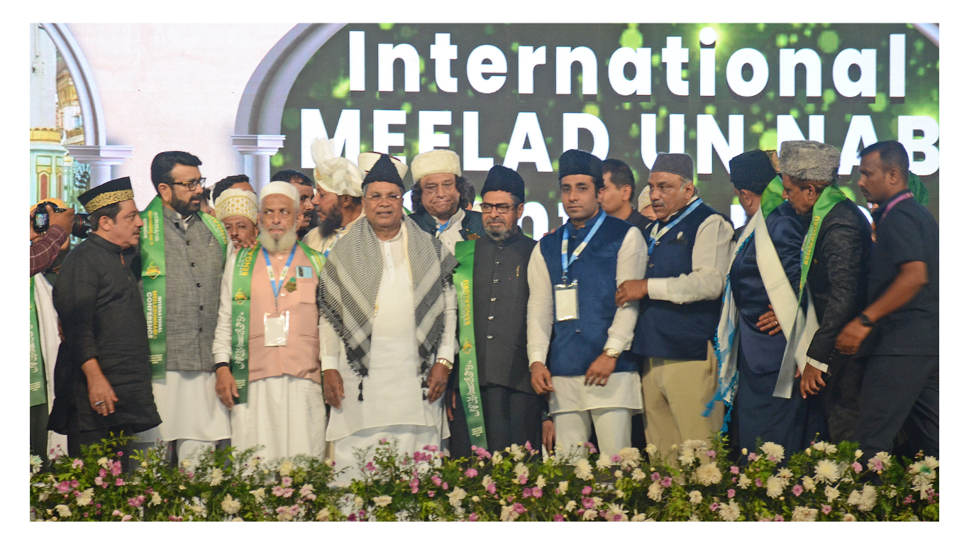 ಬೆಂಗಳೂರು: ಬೆಂಗಳೂರಿನ ಅರಮನೆ ಮೈದಾನದಲ್ಲಿ ನಡೆದ ಮೊಹಮ್ಮದ್ ಪೈಗಂಬರ್ ಅವರ ಜನ್ಮ ದಿನಾಚರಣೆಯ ಸಮಾರಂಭದಲ್ಲಿ ಮುಖ್ಯಮಂತ್ರಿ ಸಿದ್ದರಾಮಯ್ಯ ಅವರು ಭಾಗಿಯಾಗಿದ್ದರು. ಈ ವೇಳೆ ಸಮಾರಂಭದಲ್ಲಿ ಮಾತನಾಡಿದ ಮುಖ್ಯಮಂತ್ರಿ ಸಿದ್ದರಾಮಯ್ಯ ಅವರು, ಜೈ ಹಿಂದ್, ಜೈ ಕರ್ನಾಟಕ, ಜೈ ಹಿಂದೂ ಮುಸಲ್ಮಾನ್ ಎಂದು ಘೋಷಣೆ ಕೂಗಿದ್ದಾರೆ. ತಮ್ಮ ಭಾಷಣದ ಕೊನೆಯಲ್ಲಿ ಸಿಎಂ ಸಿದ್ದರಾಮಯ್ಯ ಅವರು ಈ ಮಾತನ್ನು ಹೇಳಿದ್ದಾರೆ.