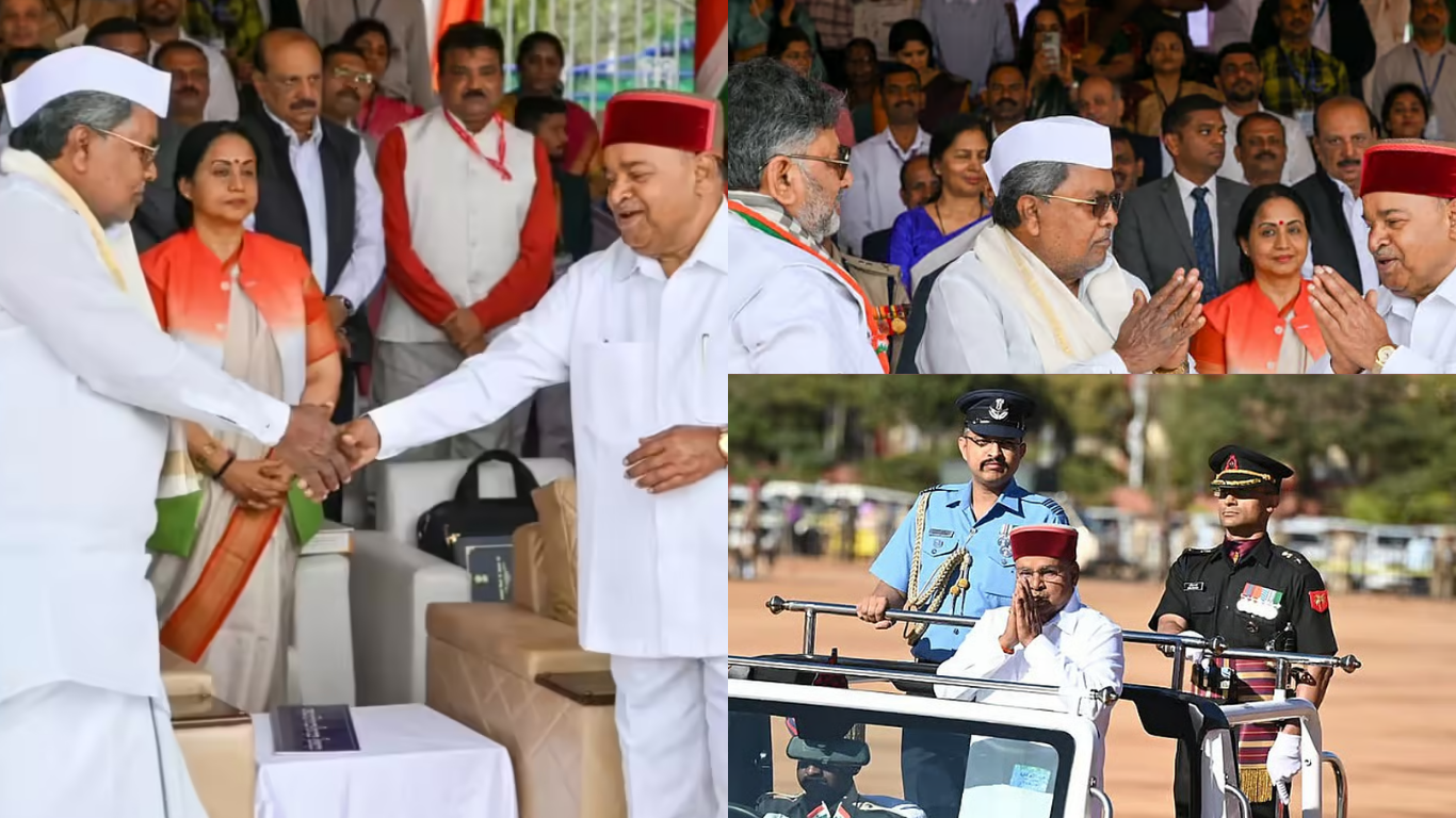 ಇತ್ತೀಚೆಗೆ, ವಿಧಾನಮಂಡಲ ಅಧಿವೇಶನದಲ್ಲಿ ಸರ್ಕಾರದ ಸಂಪೂರ್ಣ ಭಾಷಣ ಓದದೇ ಹೊರ ನಡೆದಿದ್ದ ವಿವಾದದ ಸುದ್ದಿಯಾಗಿತ್ತು. ಇಂದಿನ ಗಣರಾಜ್ಯೋತ್ಸವ ಕಾರ್ಯಕ್ರಮದಲ್ಲಿ, ರಾಜ್ಯದ ಗಣ್ಯರು ರಾಜಕೀಯ ನಾಯಕರು ಒಟ್ಟಾಗಿ ಭಾಗವಹಿಸಿದ್ದಾರೆ. ಇದೇ ಸಂದರ್ಭದಲ್ಲಿ ಮುಖ್ಯಮಂತ್ರಿ ಸಿದ್ದರಾಮಯ್ಯನವರು ರಾಜ್ಯಪಾಲ ಥಾವರ್ ಚಂದ್ ಗೆಹ್ಲೋಟ್ ಅವರು ಪರಸ್ಪರ ಕೈ ಮಿಲಾಯಿಸಿಕೊಂಡರು. ಇದನ್ನೂ ಓದಿ: 77 ನೇ ಗಣರಾಜ್ಯೋತ್ಸವ ಪಥಸಂಚಲನ - ಕರ್ತವ್ಯಪಥದಲ್ಲಿ ಮೊಳಗಲಿದೆ ರಾಷ್ಟ್ರನಮನ